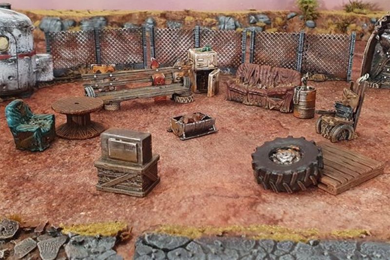 Inhabit a post-apocalyptic diorama or battle map with the furniture in the Wasteworld Home Starter Kit & Wasteworld Scrapyard. Scatter is crucial in games like Fallout: Wasteland Warfare, so furniture and fences are great for adding small patches of cover. They’re also perfect for base building in Fallout, Gamma World, or Tiny Wasteland RPGs.