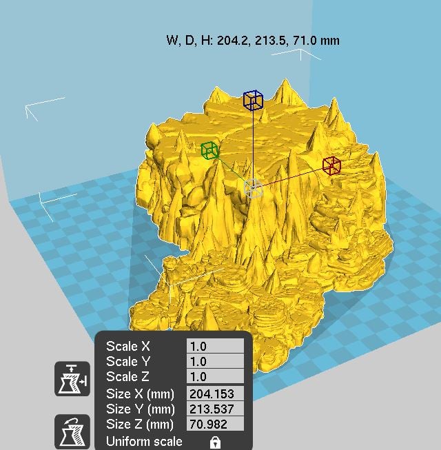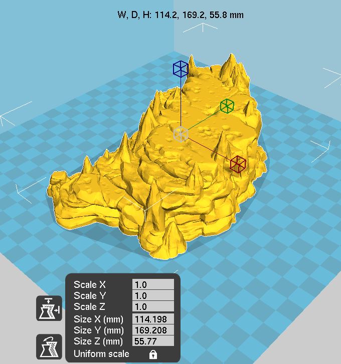 The highlighted row shows the model's current scale and other rows show what percentage to print at to reach that scale.
