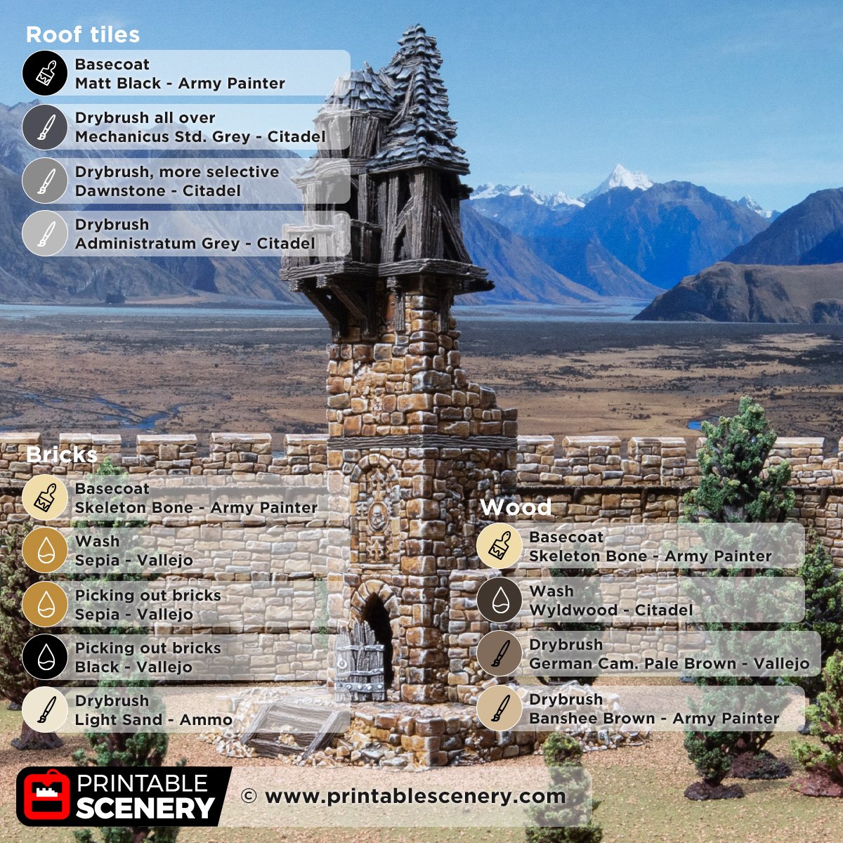 Our paint guide for castle bricks is here, and painting Wattle & Daub and Roof tiles is here. Check out this article here for tips on printing Throne & Ash models.
