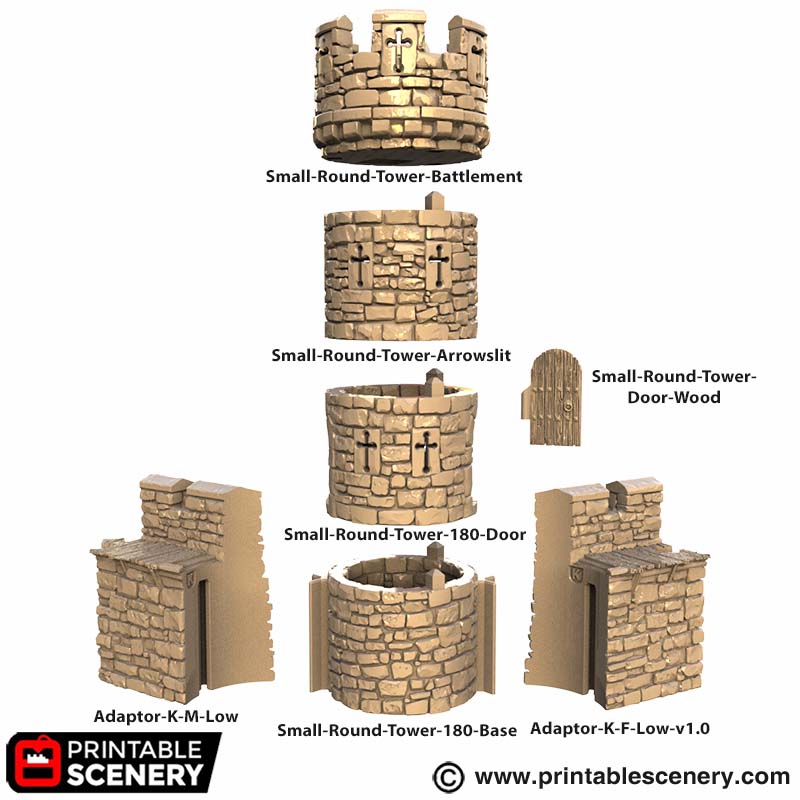 • Contains adaptors for small round towers to fit HEX Castle Walls.