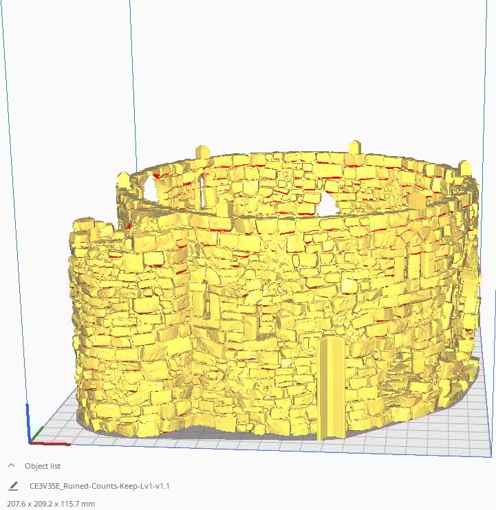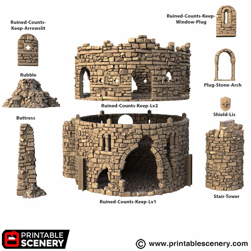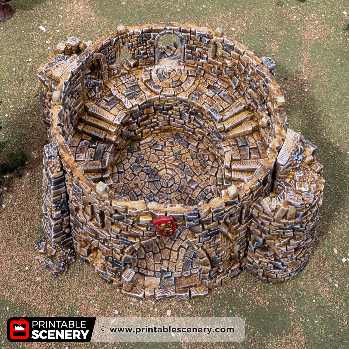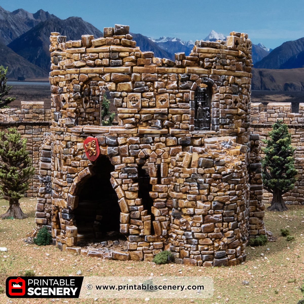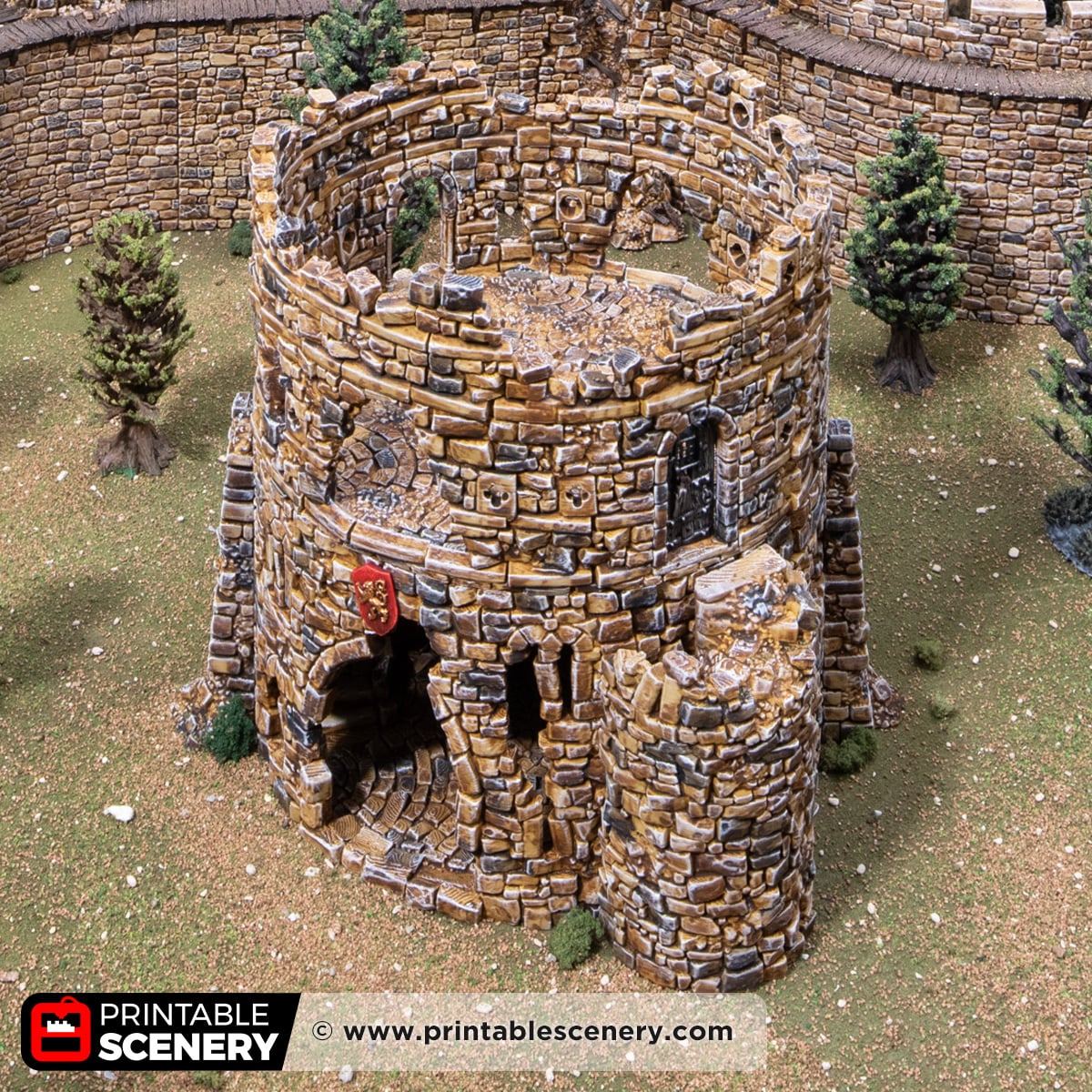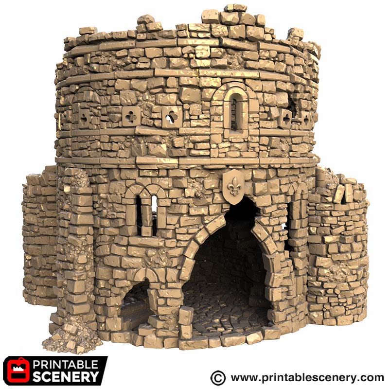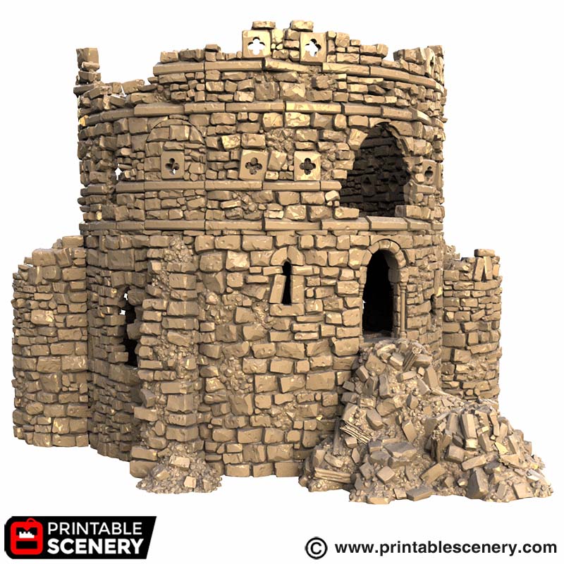 3D printed and painted castle in ruins, used for tabletop rpgs and wargames