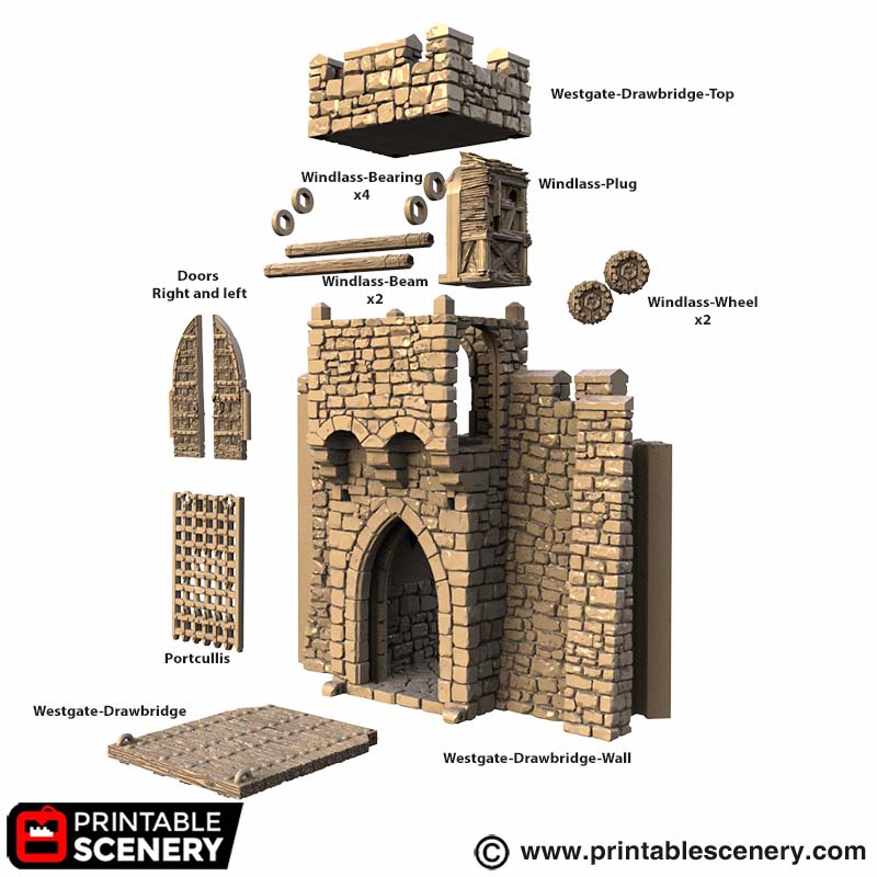 Notes for Westgate and Drawbridge 3d Print file: